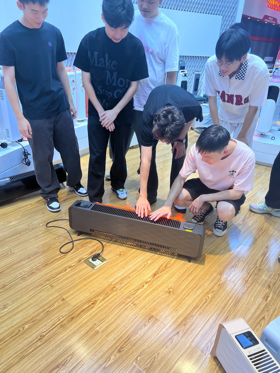 期間,同學們對炭火火焰踢腳線產生了濃厚興趣,這也是先鋒去年冬季的主推新品,即開即熱。