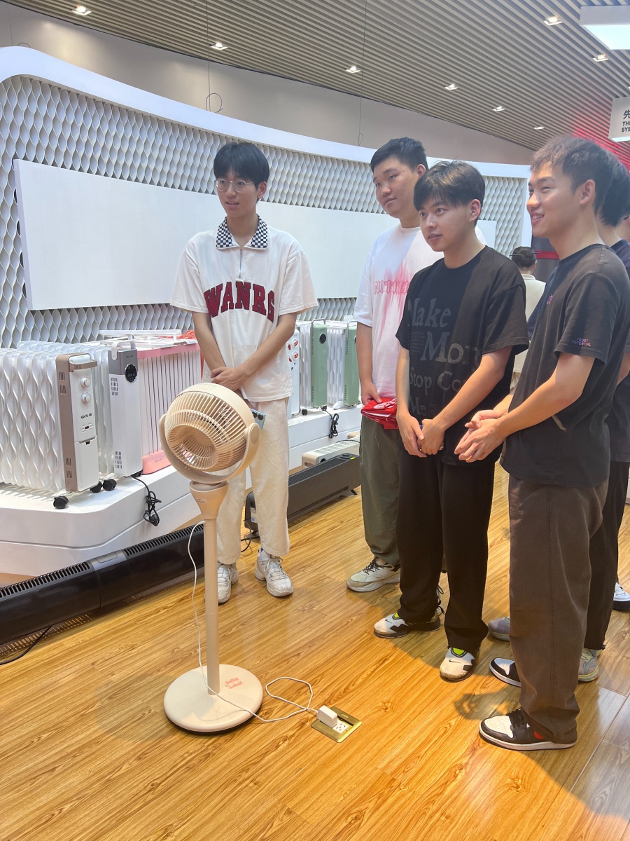 這是今年新品離線智能語音循環扇,在聽完循環扇和普通風扇的區別后,同學們也親自體驗,與“小先小先”進行了親密交互。